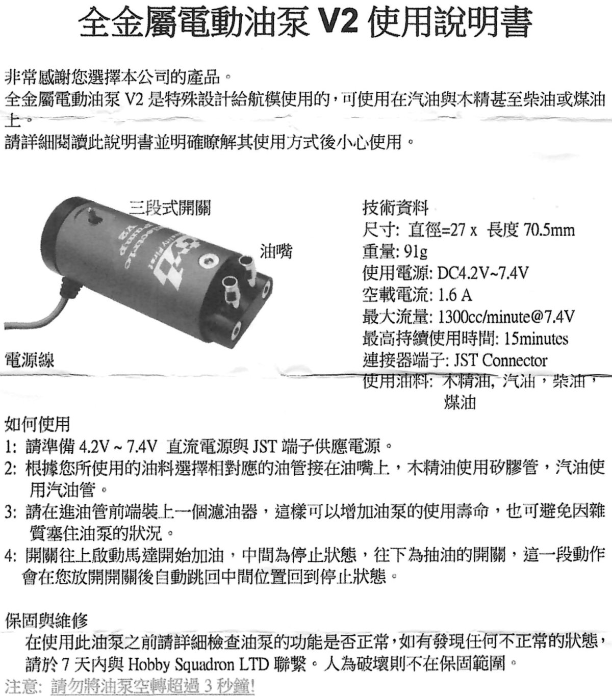 全金屬電動幫浦 V2 (4.2~7.4V)