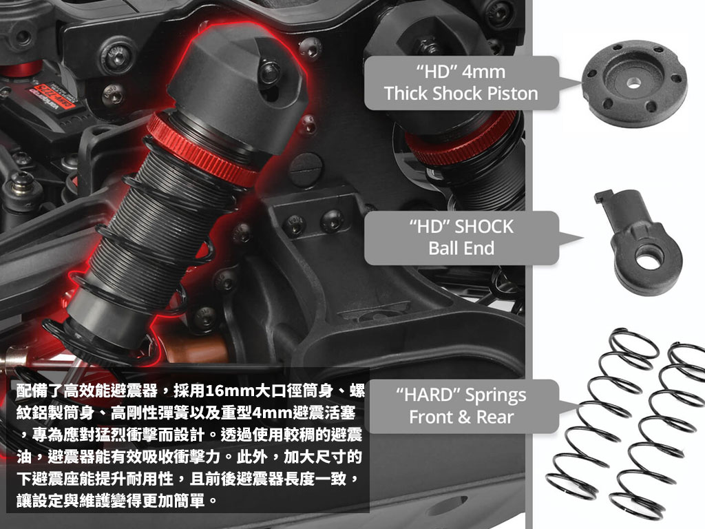 ✅ 強悍操控:鋁合金底盤+大缸徑避震器,跳台過彎都超穩