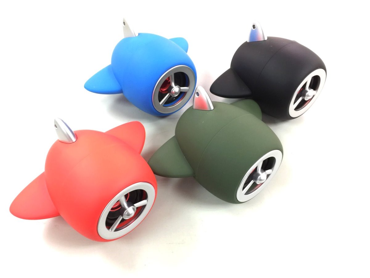 ►飛機造型多功能藍芽喇叭共有四個顏色,黑、橘、水藍、綠色