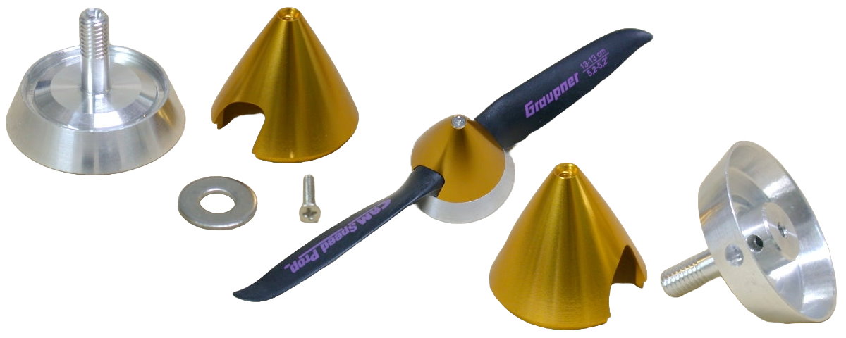 高精準度有紅色, 藍色, 紫色, 金黃色, 鋁合金原色共五種顏色可供挑選, 適合軸心 2.3 mm 的馬達使用, 它適合 Graupnerru 競速槳, APC 的電動競速槳須稍微加工即可使用.