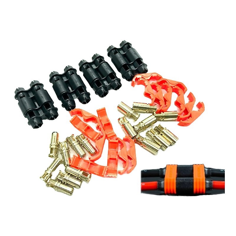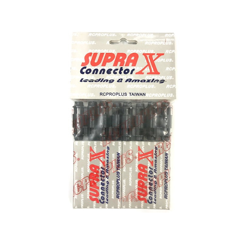這是 RCPROPLUS Pro-D5 Supra X 電池連接器套件。這些 Pro-D5 連接器採用獨特的專利香蕉插頭鎖定設計,可安全鎖定到位,可處理極端 3D 飛行過程中常見的快速移動和振動,而不會分開。更堅固的夾克和按扣擴展了上一代 Supra X 連接器的優勢,使它們更好。