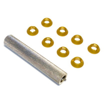 ►遙控器撥桿開關鋁合金彩色螺帽套裝組有:金色紅色紫色綠色 共四種陽極色調, 總計八個外加專用板手.