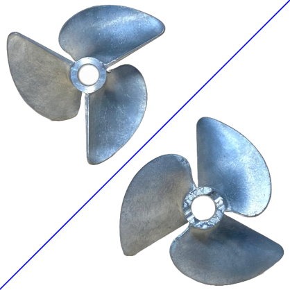 ♦ Kyosho 三葉金屬槳 D40 x P1.4", 適用於 21 級引擎船, 5mm 無螺牙軸心.