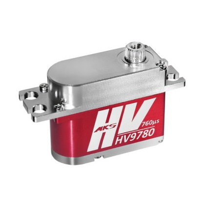 這是鋁製外殼的 MKS HV9767 鈦齒輪高壓伺服機。 建議將該伺服系統用於 500 級直升機。