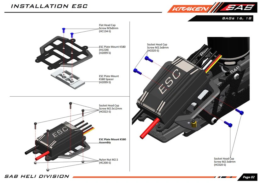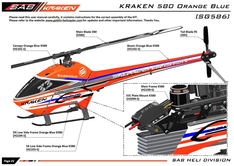 這是 Kraken 580 的新改款,採用全新的橙色/藍色配色方案,並更新了新的 ESC 電變支架和上側板,更堅固,更穩定。這款最新更新的 Kraken 580 還配備了最新的 SAB S系列 580mm 和 95mm 主尾槳。